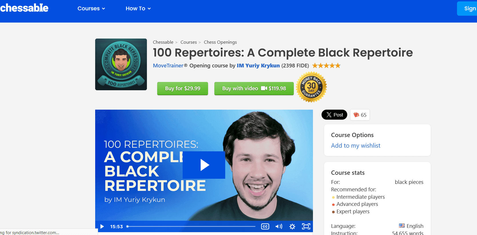 This complete guide to playing Black checks all of the boxes in just 100 variations. It’s the 10th Chessable course by the prolific International Master Yuriy Krykun…