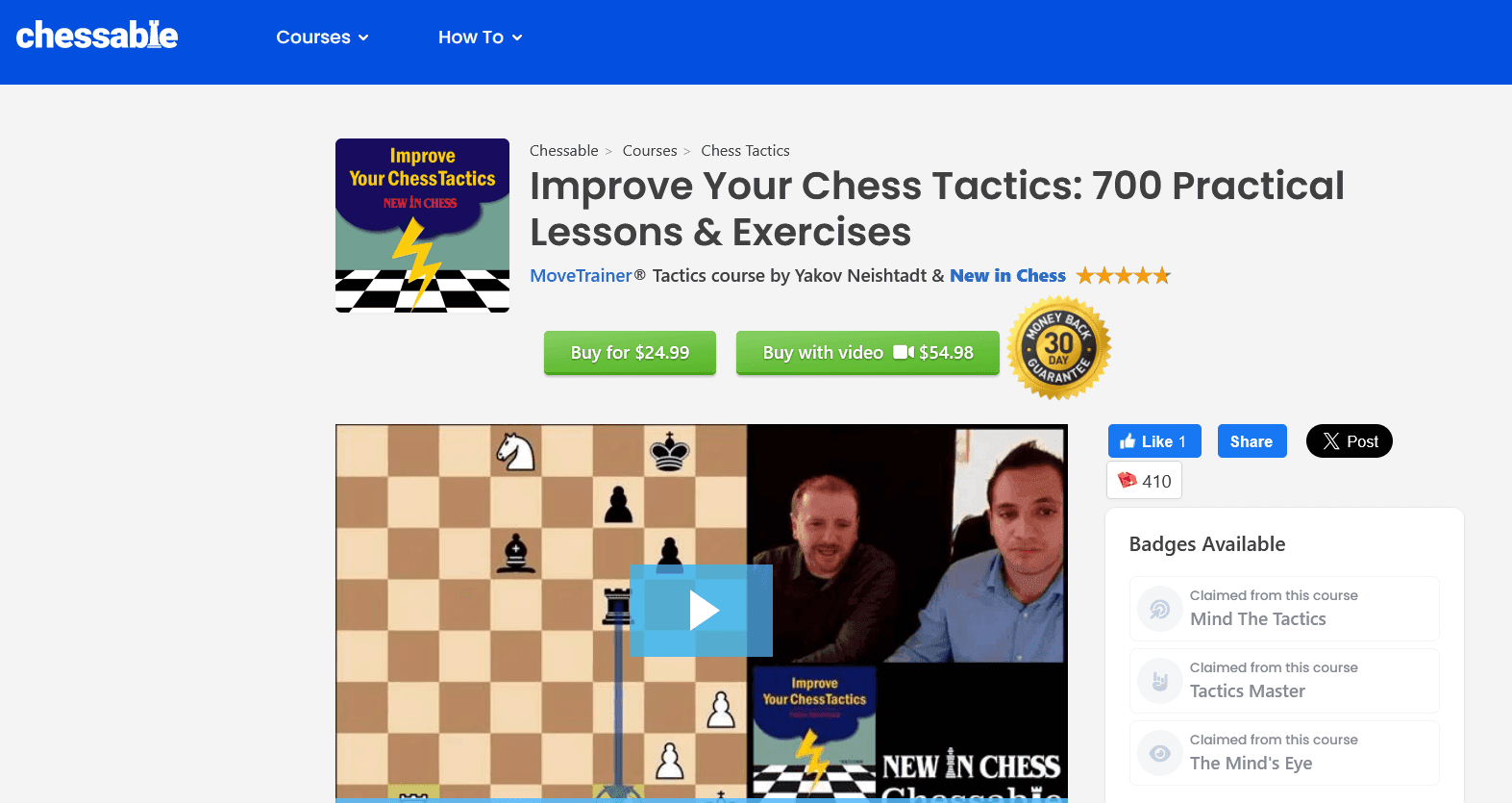 Neishtadt’s brilliant Improve Your Chess Tactics has been a big hit on Chessable – and now it comes with an optional video upgrade.