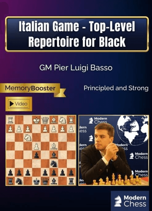 GM Pier Luigi Basso keeps building his 1.e4 e5 repertoire for Black. After publishing the excellent course Berlin Defence – Top-Level Repertoire for Black, he provides you with a powerful repertoire against the Italian Game.