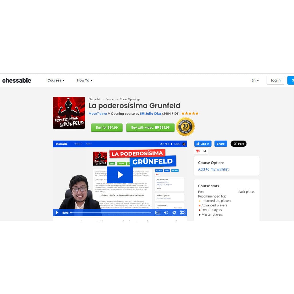6 reviews for La poderosísima Grunfeld by IM Julio Diaz (2404 FIDE) Chessable (Language Spanish)