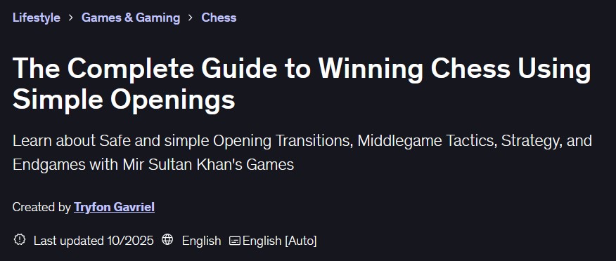 This comprehensive guide features over 24 hours of video content organized into 61 sections and 120 lectures, covering every aspect of winning chess with simple openings: